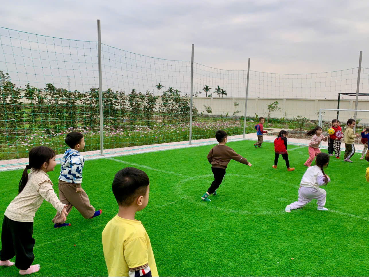 Dưới đây là một số hình ảnh về buổi giao lưu bóng đá của các bé lớp 4 tuổi B4