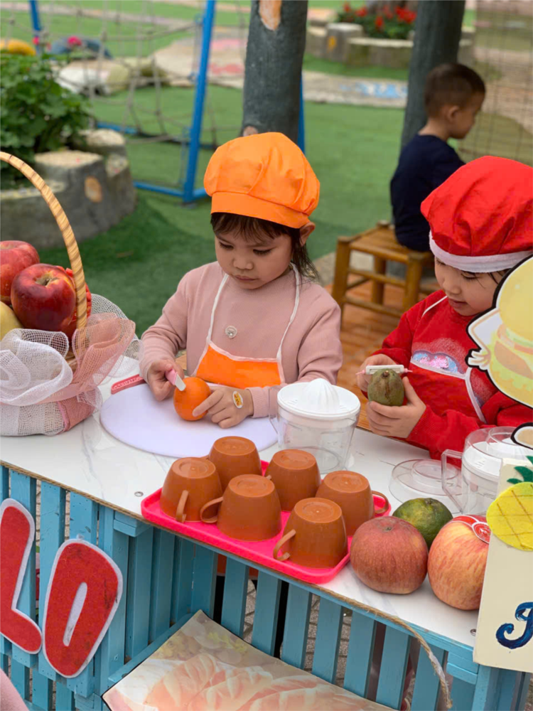 Sau đây là một số hình ảnh của các bé lớp 4 tuổi B4 được trải nghiệm tại góc chợ quê: