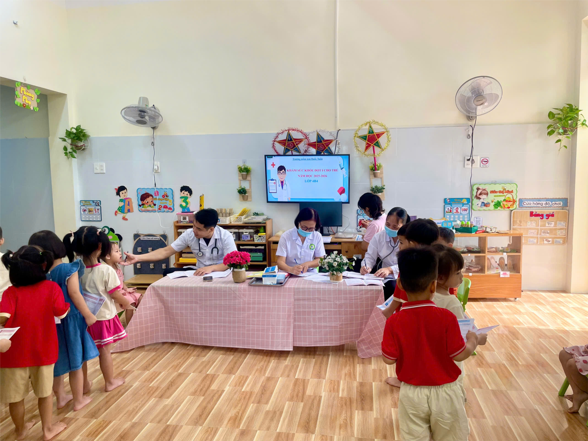 Sau đây là một số hình ảnh trong ngày khám sức khỏe đầu năm học 2025 – 2026 của các bé lớp 4 tuổi B4: